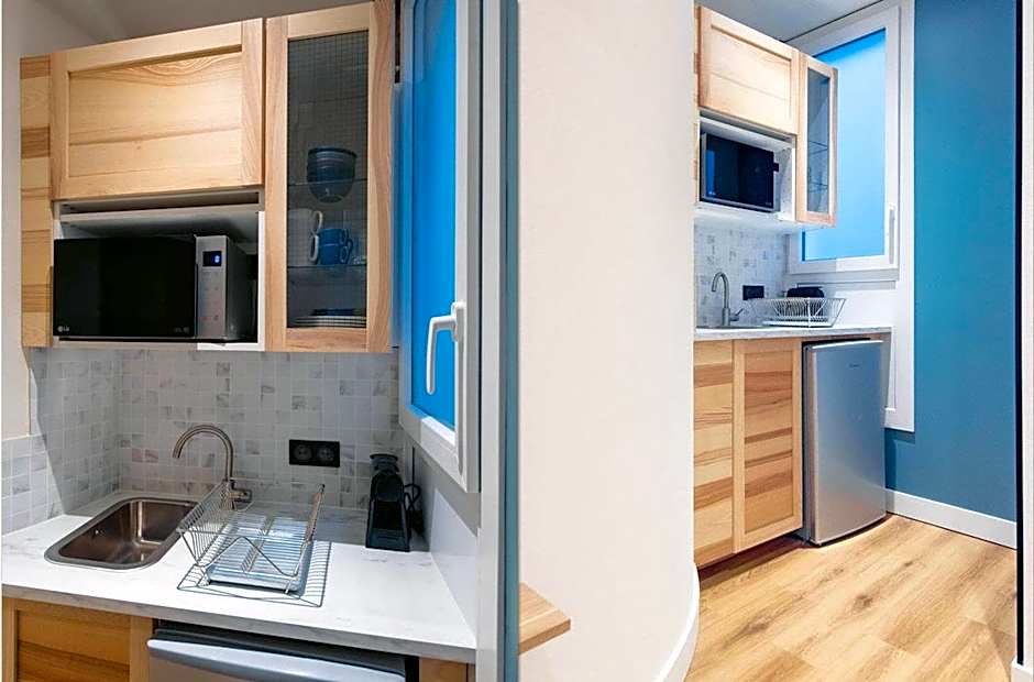 This apartment features air conditioning, seating area and sofa.